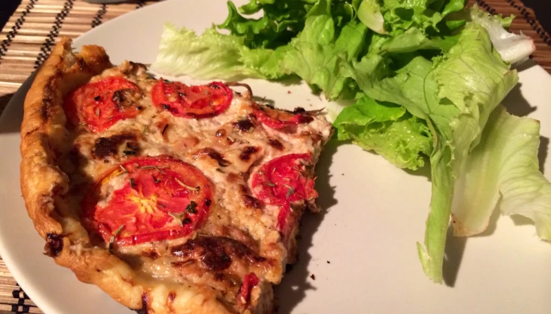 Sortez le plat du four. Tartinez le fond de la pâte de moutarde. Verser la préparation du thon par dessus puis couper des rondelles de tomates et les disposer sur la quiche. Pour finir, ajouter des herbes de provence, du basilic et un filet d'huile d'olive.