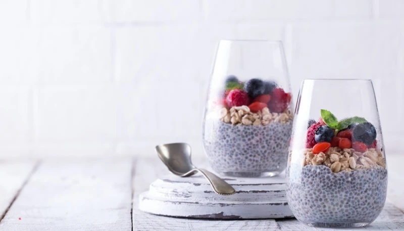 2° Placez au réfrigérateur et laissez les graines de chia s'hydrater pendant au moins 30 minutes, ou idéalement toute la nuit pour qu'elles gonflent.