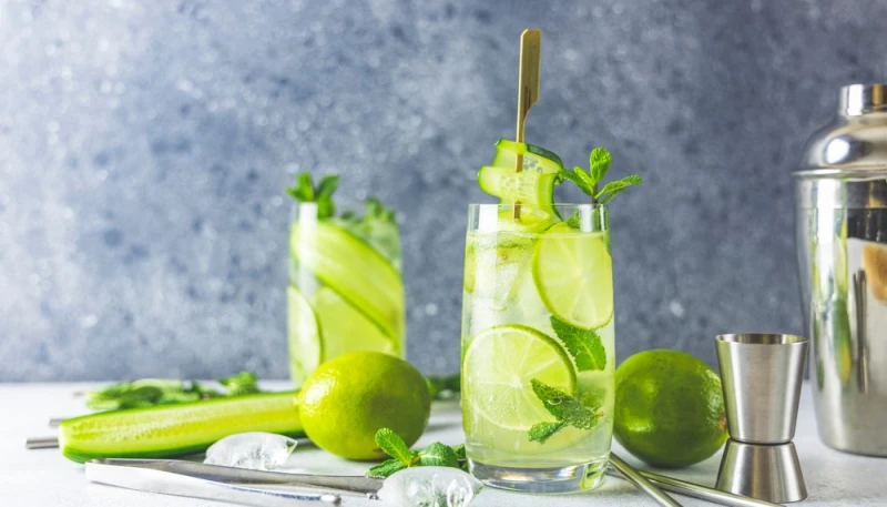 4° Dégustez ce cocktail de concombre et citron pour un moment de fraîcheur et de plaisir lors de votre prochain repas.
