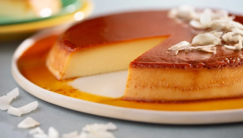7° Démoulez délicatement le flan à la noix de coco sur une assiette en retournant le moule, et servez frais.