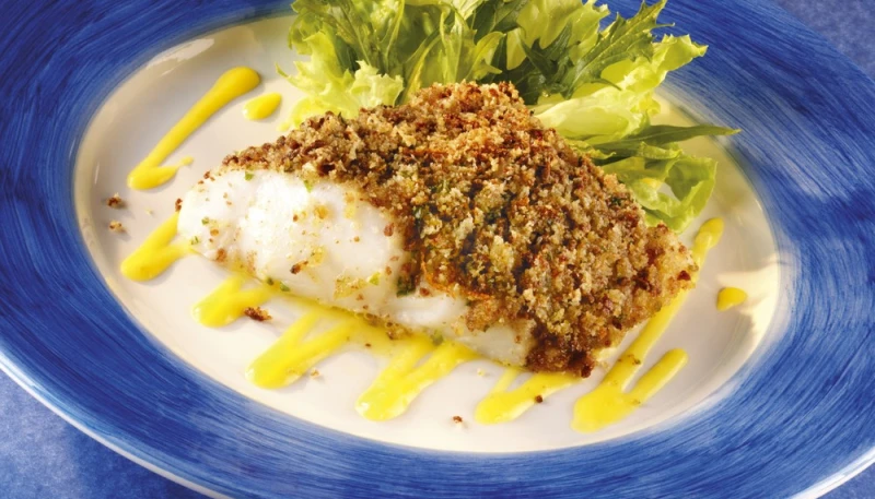 7° Servez le cabillaud en croûte d’herbes chaud, accompagné de légumes vapeur, d’une purée de pommes de terre ou d’un riz pilaf pour un repas équilibré.