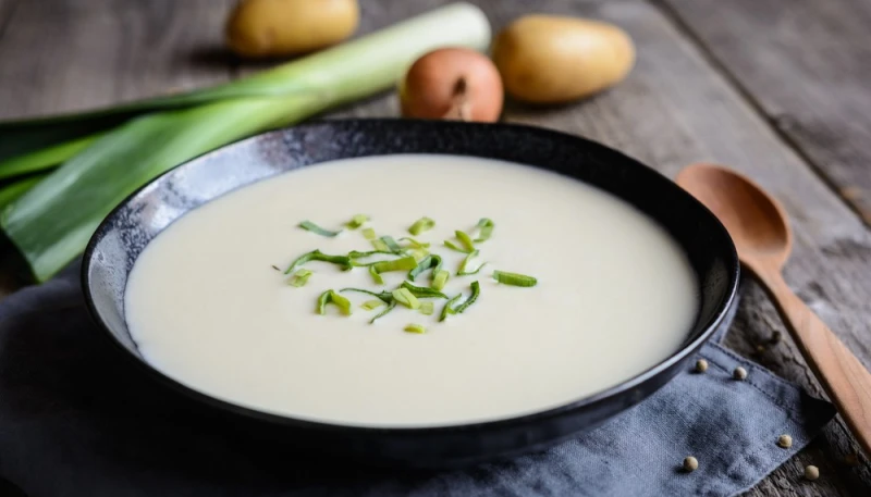 6° Servez le velouté de poireaux et pommes de terre au fromage chaud, parsemé du reste de fromage.