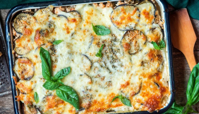 5° Sortez le gratin du four et laissez-le reposer quelques minutes. Garnissez avec des feuilles de basilic frais pour apporter une touche de fraîcheur.