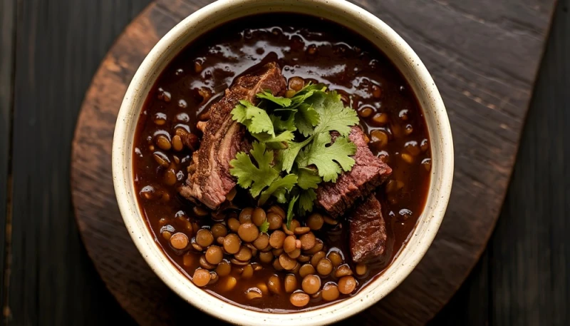 5° Retirez la feuille de laurier, parsemez de coriandre fraîche et servez la soupe de côtes levées de lentilles épicées chaude avec du pain.