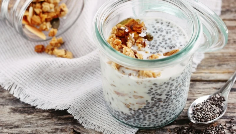 5° Dégustez votre pudding de chia au lait végétal et granola frais au petit-déjeuner ou en collation.