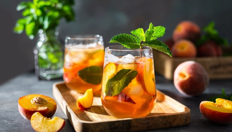 8° Versez le thé glacé maison à la pêche bien frais dans des verres remplis de glaçons