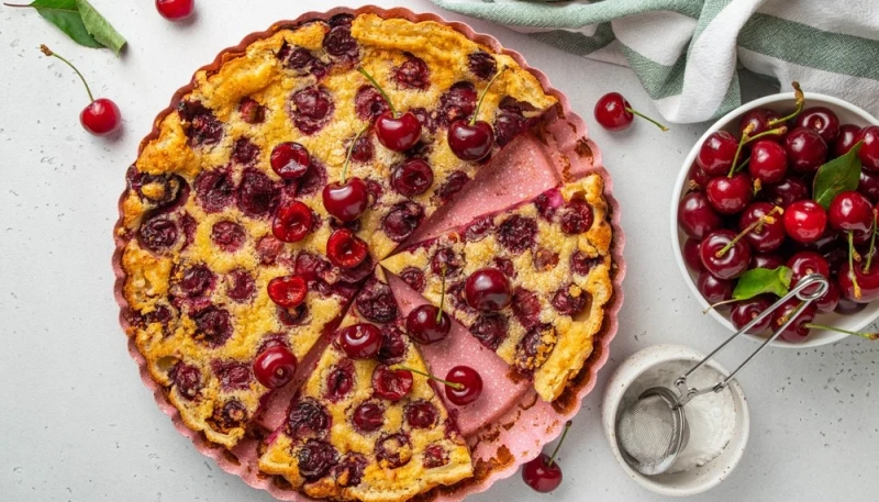 8° Enfournez pendant environ 35 minutes, jusqu’à ce que le clafoutis soit doré et légèrement gonflé.