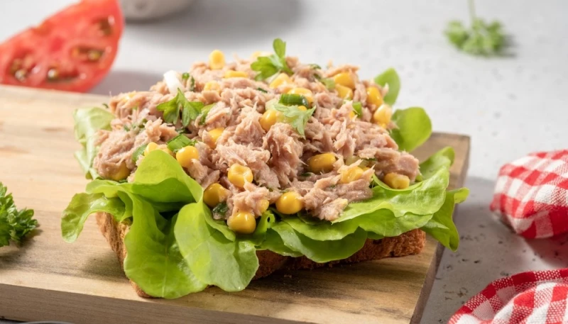 4° Servez votre sandwich thon-maïs frais avec un filet de citron ou une tomate tranchée.