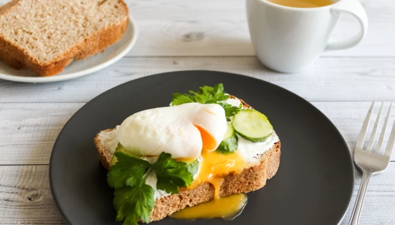 2° Cassez un œuf dans une tasse. Créez un tourbillon dans l’eau chaude avec une cuillère et versez-y l’œuf délicatement. Faites cuire pendant 3 minutes.