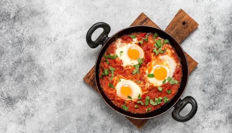 6° Faites 3 petits creux dans la sauce à l’aide d’une cuillère et cassez-y délicatement les œufs.