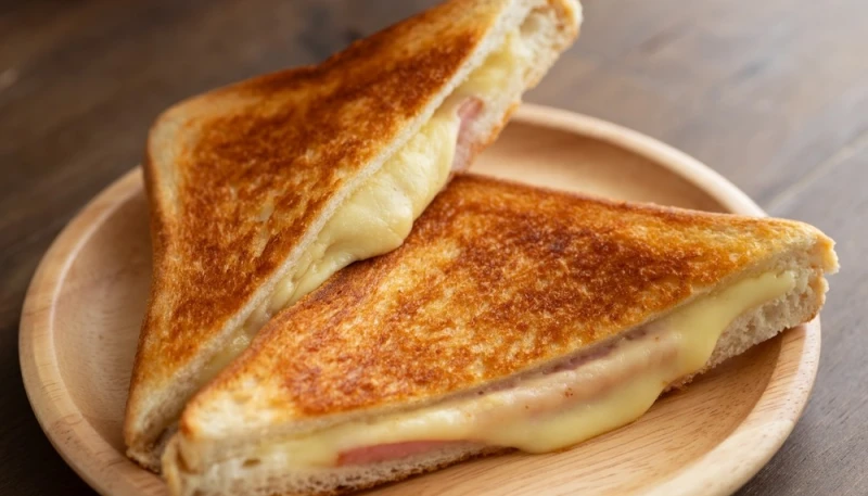 7° Déposez les sandwichs dans la poêle chaude et faites-les dorer 2 à 3 minutes de chaque côté jusqu’à ce qu’ils soient bien dorés et que le fromage soit fondu.