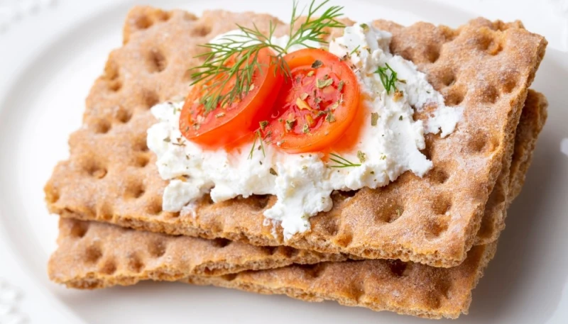 1° Tartinez généreusement les tranches de pain croustillant de seigle avec le fromage frais.