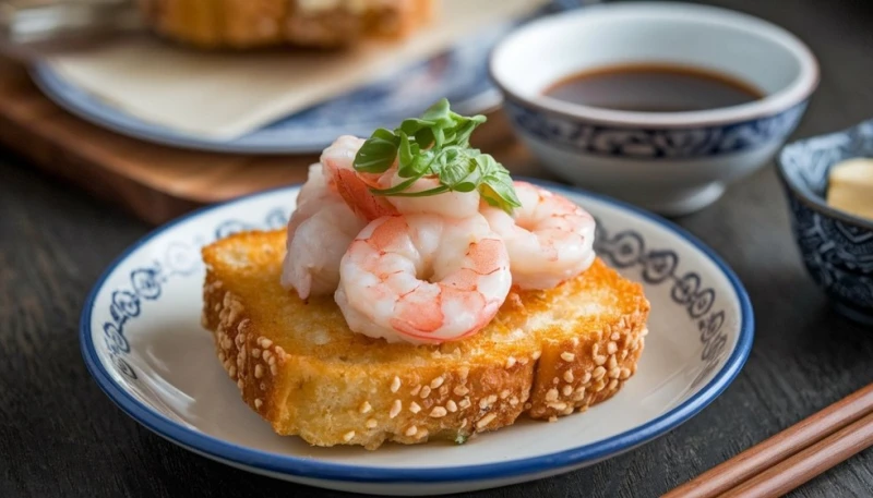 5° Déposez 2 à 3 crevettes entières sur chaque toast chaud.