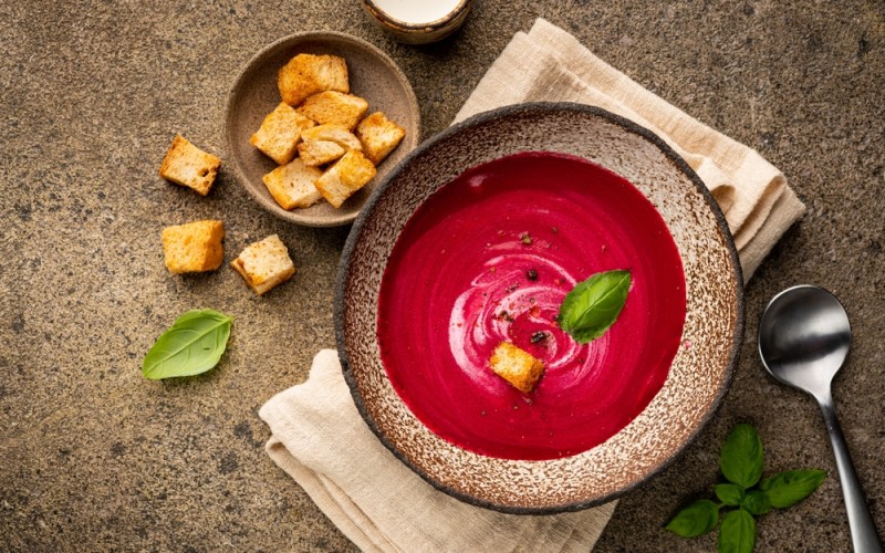 7° Servez chaud, décoré de croûtons et de quelques feuilles de basilic ou persil frais.