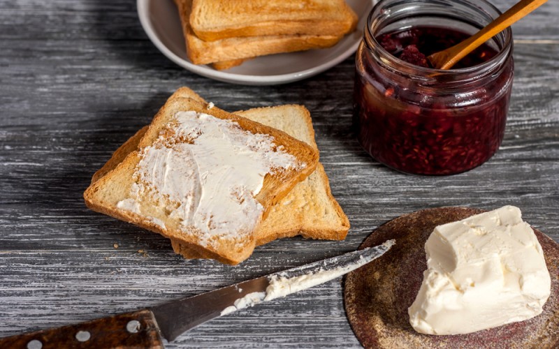 2° Tartinez généreusement chaque tranche de pain avec le fromage frais.