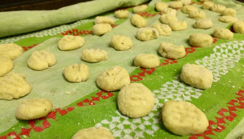 Former des boudins avec la pâte et les couper en petits tronçons qu'on farinera par la suite. Pour les petites striures, vous pouvez les réaliser à la fourchette ou avec le bout d'un fouet.