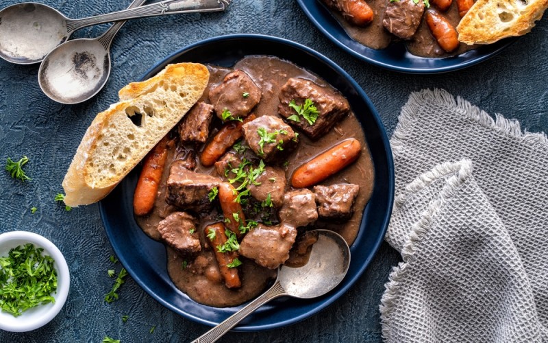 8° À la fin de la cuisson, rectifiez l’assaisonnement. Servez chaud, accompagné de pain de campagne, de pommes vapeur ou de tagliatelles fraîches.