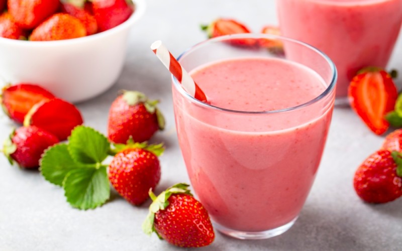2° Placez les fraises, le lait, le yaourt et le miel dans un blender.