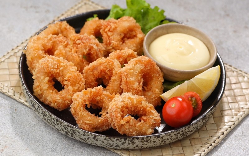 5° Faites frire les calamars par petites portions jusqu’à ce qu’ils soient dorés et croustillants (environ 2 minutes).