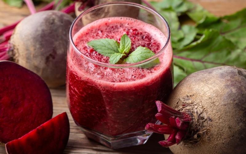 2° Mettez les morceaux de betteraves, la pomme, le gingembre et l’eau dans un blender puis mixez jusqu’à obtenir une texture lisse.