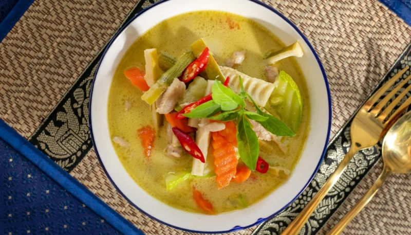 Découvrez un savoureux curry vert de légumes, une recette inspirée de la cuisine thaïlandaise, parfaite pour apporter un brin d'exotisme à votre table. Véritable explosion de saveurs, ce plat associe des légumes de saison cuits dans une pâte de curry vert onctueuse, le tout enrobé de lait de coco. Idéal en semaine, ce curry est non seulement rapide à préparer, mais aussi économique, en faisant le choix parfait pour un repas équilibré et gourmand.