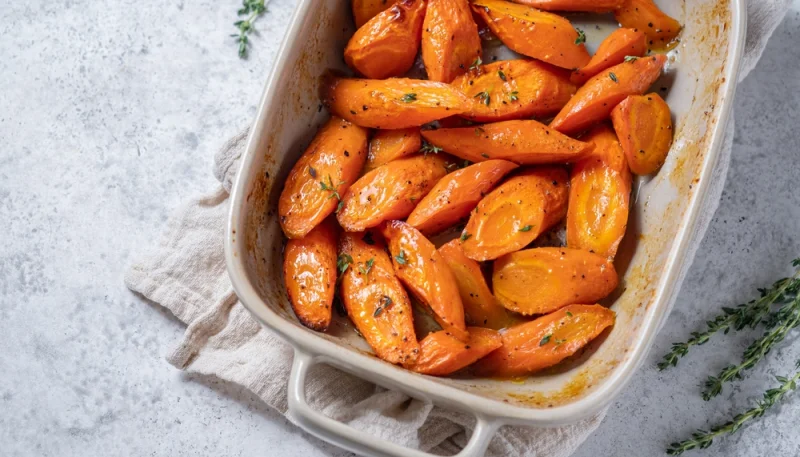 6° Enfournez pendant environ 20 minutes, jusqu'à ce que les carottes soient dorées et tendres.