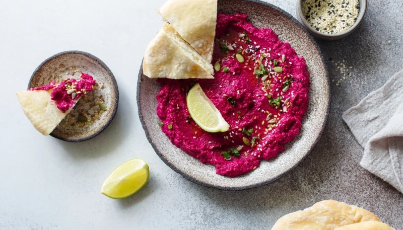 Découvrez le houmous de betterave, une variante festive et colorée du houmous classique, parfaite pour Noël. Sa couleur vive et sa texture crémeuse séduiront vos convives dès la première bouchée. Facile et rapide à préparer, il s'accompagne idéalement de crudités ou de pain pita pour un apéritif original et convivial. En plus d'être délicieux, ce houmous est une option saine et économique, faisant la part belle aux saveurs naturelles des pois chiches et de la betterave.