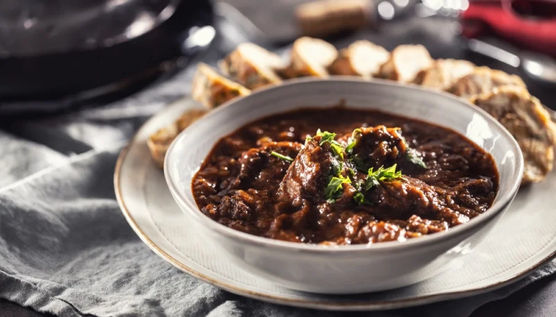 Plongez dans les saveurs riches et réconfortantes de la Bourgogne avec cette version express du bœuf bourguignon. Parfaite pour les amateurs de cuisine française pressés, cette recette simplifiée ne sacrifie rien au goût. Cuisinée en moins de 30 minutes, elle combine bœuf tendre et sauce aromatique avec des ingrédients facilement accessibles. Idéale en toute saison, que vous soyez étudiant ou professionnel, elle apportera une touche de sophistication à votre dîner sans compromettre votre emploi du temps chargé.