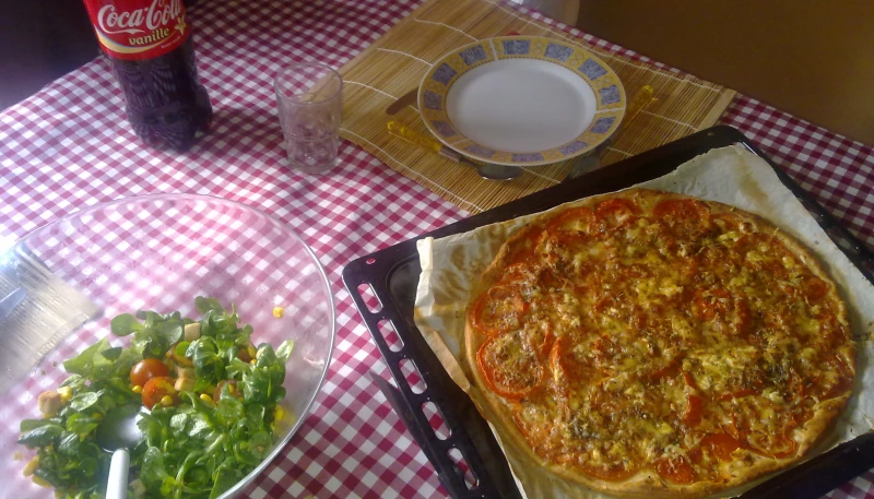 Enfournez pendant environ 15 min, lorsque la pâte est dorée, c'est cuit. Versez un filet d'huile pour évitez qu'elle soit sèche.