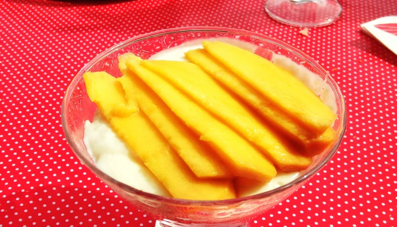 Disposer ensuite la mangue en fine lamelle et déguster!