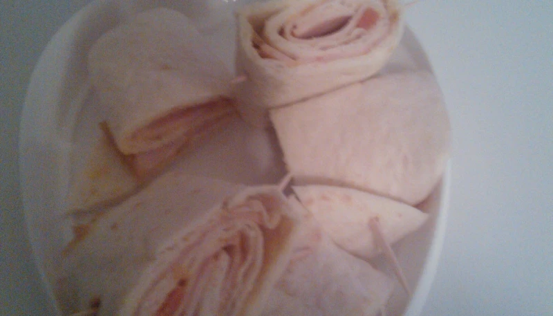 4) Roulez le tout, mettez des piques pour tenir la tortilla.