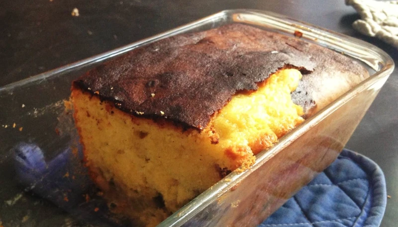 Déposez les morceaux de rhubarbe au fond d'un moule et saupoudrez de sucre.