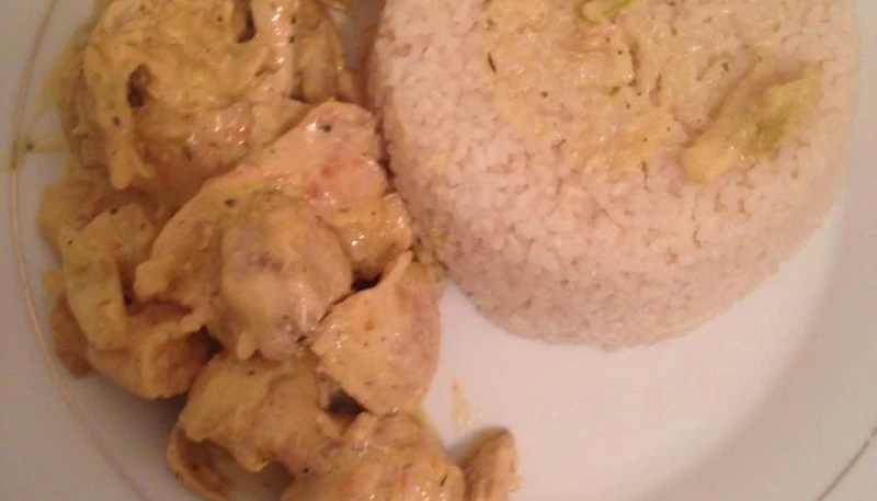 2° Faire chauffer un filet d'huile dans une poêle, puis ajoutez les morceaux de poulet et les oignons.