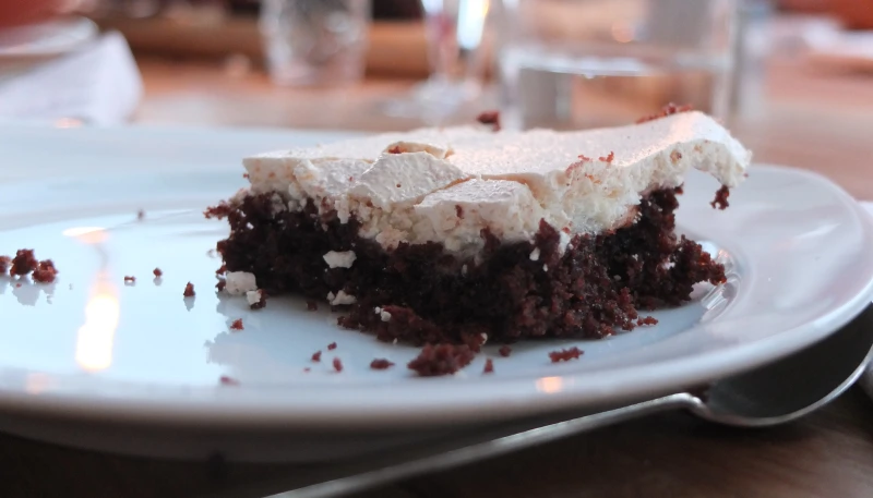 Verser le tout, gâteau puis meringue étalée à la spatule,dans un moule garni de papier sulfurisé et enfourner pour 15 minutes. Attention, le coeur du gâteau doit être très peu cuit. Ne vous fiez pas à sa croûte extérieure encore très molle, le brownie se durcira en refroidissant.