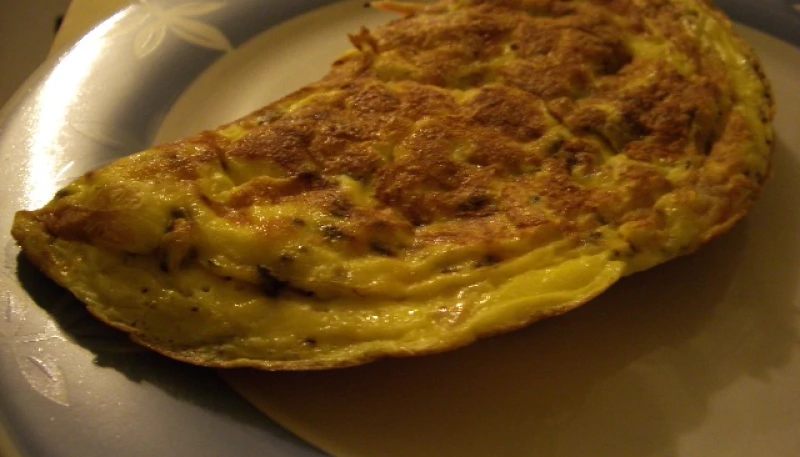 # 6 Aors lorsqu'il ne reste qu'un peu d'oeuf liquide, retournez le tout, pour faire cuire l'autre côté.