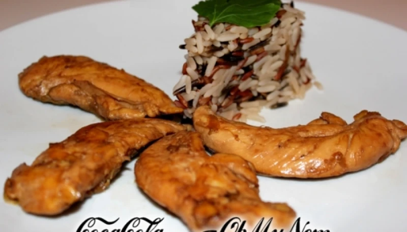 Mettre à cuire les poireaux avec l’ail émincé finement et 3 cas d’eau à feu moyen dans la même poêle pendant 10 minutes à couvert. Puis rajouter le poulet et la sauce soja. Laisser cuire encore une dizaine de minutes, et là…. c’est le moment de mettre le Coca Cola dans la poêle!