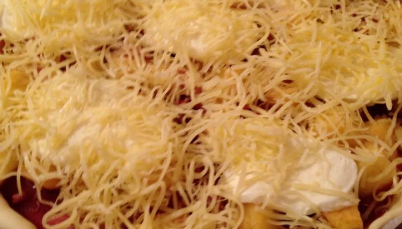 8. Enfournez le plat pour 15 - 20 minutes. Une fois cuit, sortez la pizza et servez bien chaud.