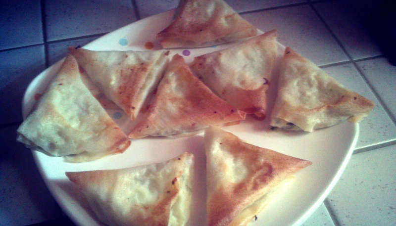 3. Réaliser le pliage des samoussas, voir la technique http://www.lecanarddequennie.com/wp-content/uploads/2013/04/pliage-brick.jpg