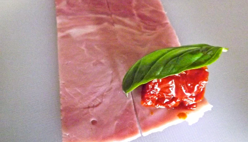 Il ne vous reste plus qu’à rouler la tomate dans le jambon et continuer avec autant de tranche que vous voulez.