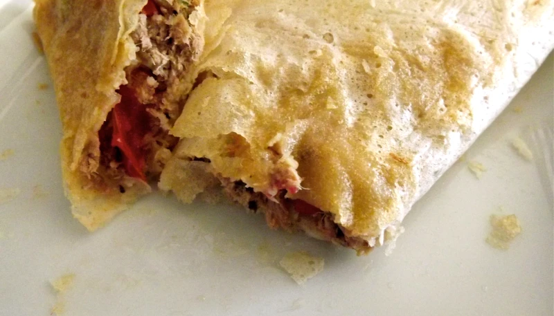 Il vous suffit de mettre la farce au niveau du point rouge (de l'image si dessous) et de suivre l’exemple du pliage. Pour ma part après deux trois loupés, on prend la main. Et je dois avouer que je suis assez fier du résultat pour un premier essai.