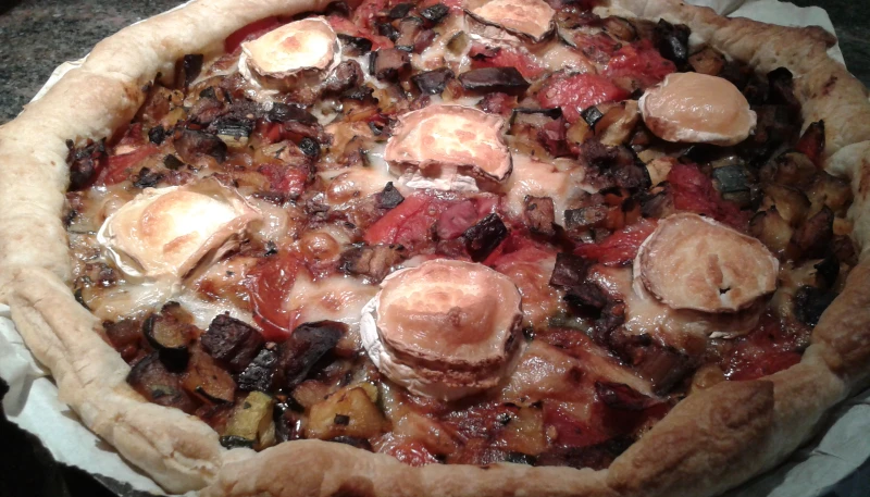 Couper quelques rondelles de buche de chèvre et les disposer sur les légumes.