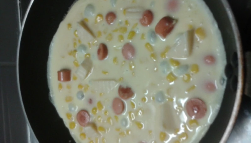 Dans un bol mélanger l'oeuf et la crème, et ajouter le mais