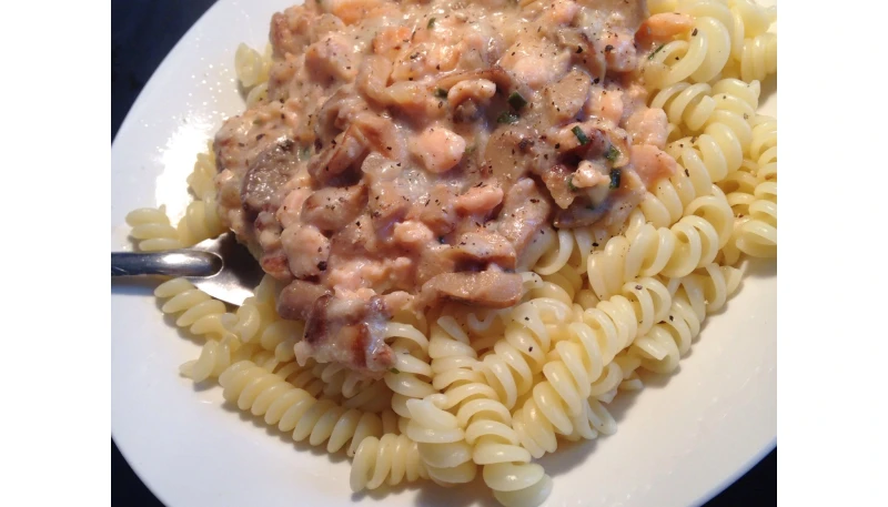 -Couper les tranches de saumon fumé en petits bouts ainsi que les différentes herbes. Les mettre dans la poêle quand la crème est bien chaude. Laisser à feu doux peu de temps cela suffira.