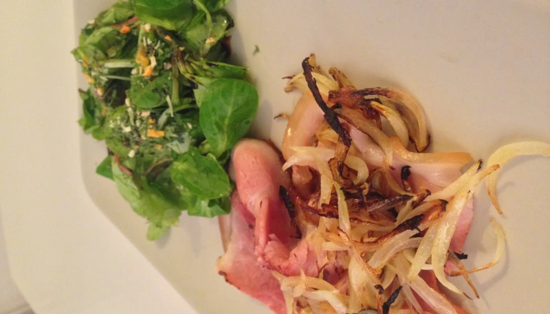 Ajouter la tranche de jambon dans la poêle et laisser là dorée des deux côtés.