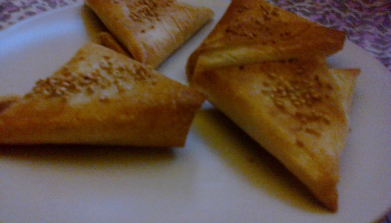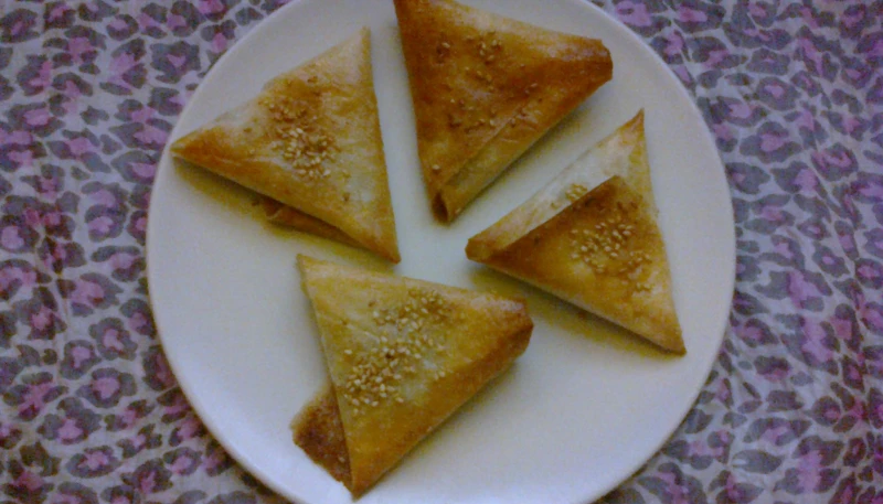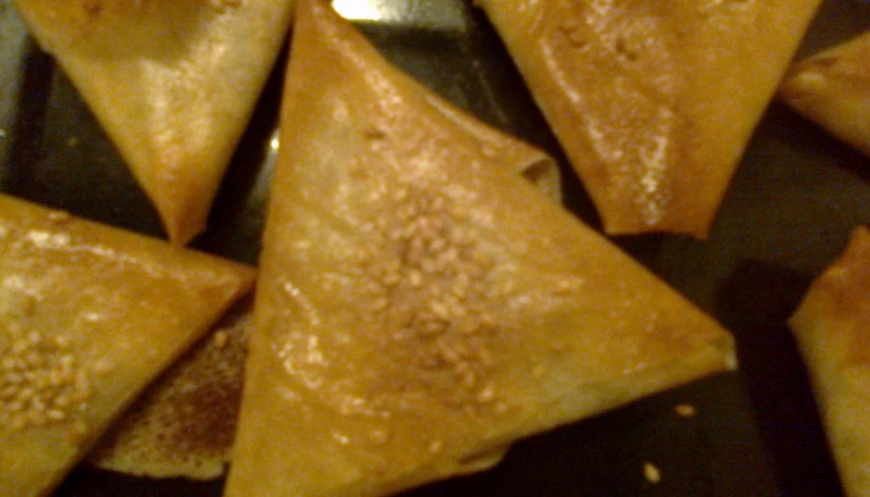 Une fois cette opération terminée, disposer les samoussas sur une plaque allant au four. Vous pouvez les imbiber de jaune d’œuf ou de beurre pour qu'il dore à la cuisson, et répartir des graines de sésame sur le dessus.
