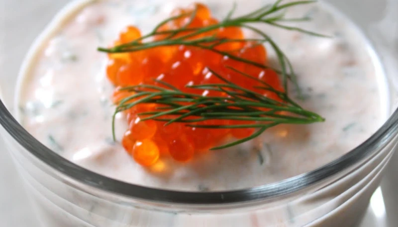 Mettre votre préparation dans les verrines et au choix ajouter de la ciboulettes ou oeufs de lump sur le dessus.