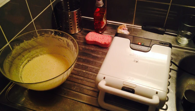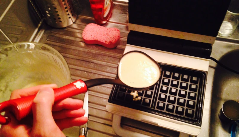 1) verser la pate dans votre gaufrier en laissant cuire 15 sec