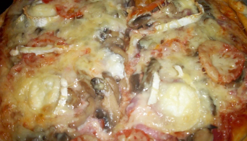 Y étaler la purée de tomate mettre les tomates, les champignons, le jambon, le fromage ... (la garniture de votre choix ou les restes du frigo)