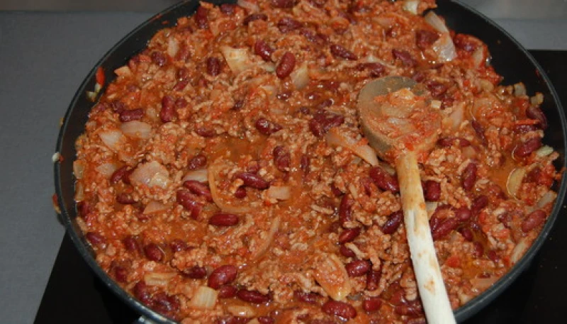 2. Ajouter la viande hachée, la laisser prendre couleur. Ajouter la poudre a chili (suivant les goûts, + ou - pimenté).