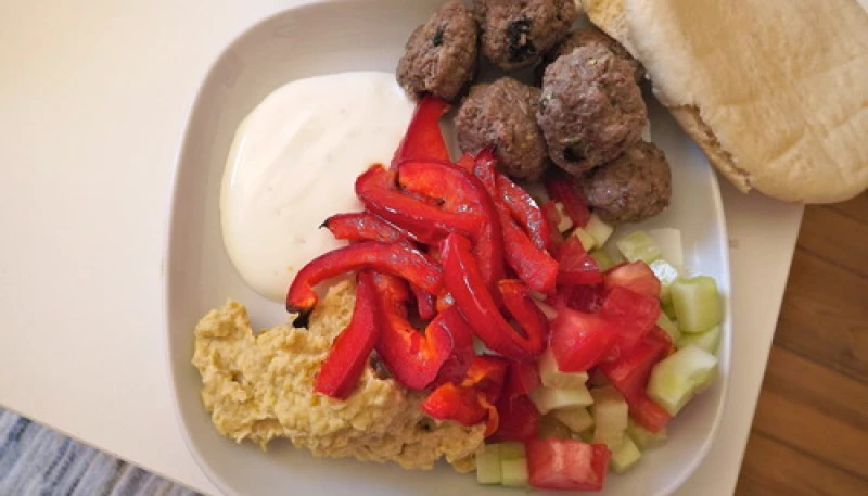 Petite astuce, une fois que vos poivrons marinés sont cuits, éteignez le four et placez vos pain pita quelques minutes pour les réchauffer.